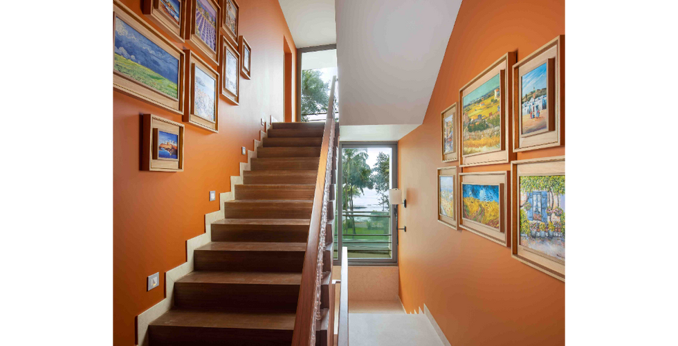 Connecting all the four storeys is a zesty mustard orange staircase. Another aspect that’s seen throughout is the plethora of family photographs and artworks that adorn the many sections of the home, some customised by us, others picked by the owners during their travels abroad."
