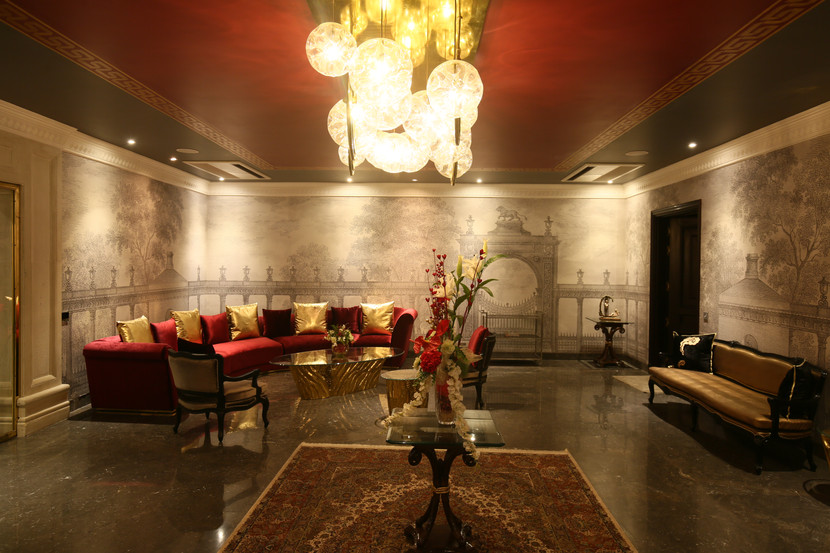 The exterior facade of this iconic structured, beautiful mansion in the avenue is truly mesmerizing and tastefully crafted in a classical style. It is indeed a massive estate that adorns a relatively modern street. The aesthetic appeal of this house lies in the beautiful play with the volumes and the double-height spaces before the balcony. The massive windows, which are nearly 13 feet long, create an abundance of grandeur with a classic scale of the furniture.