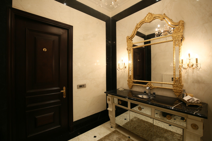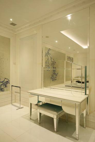 The transitional spaces between the living expaenses and the vast foyer areas graced with grand staircases at the entrance exude a rich architectural element that elevates the splendor and grandiosity of the place. The fusion of all the imperial and prominent furniture pieces, design elements, doors, windows, and panellings, gives the crowning touch and an impression of an ideal home space with a perfect equilibrium and layout.