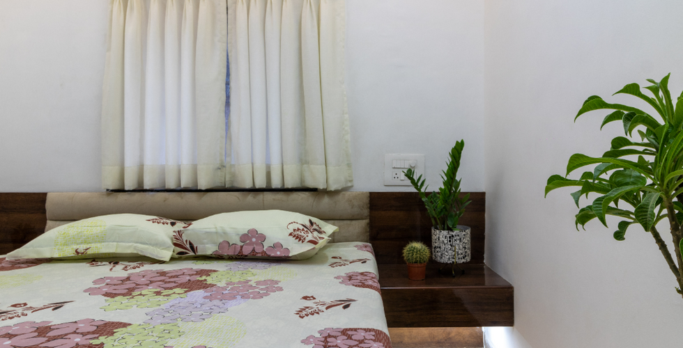 Considering the compact spaces the common wall between both the room has been replaced by two 10' X 2' X 10' wardrobes on both side.